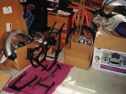 Right away, I knew I would have to take the bike apart totally, and restore it one piece at a time. Within minutes, I threw away any idea of a budget and knew that this thing was going to cost me plenty in time and money. But I decided to do it anyway because I feel this bike is a part of history, and I wanted to save it. When I was a young many in the 60's, I wanted an X6, but couldn't afford it. I ended up with a Yamaha YL-1 twin-jet, a 100cc twin that was a great bike, but not an X6.