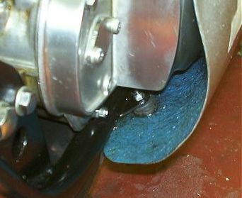 A quick check of the bike and the blow-back from the carbs had been massively reduced - another good sign. But oh dear - the back wheel wobbled from side to side and was VERY hot. The bearings had come loose in their housings and the wheel was moving from side to side. The brakeplate had been touching the wheel and bits of Aluminium were everywhere! I wondered if I had been resting my foot on the back brake lever without noticing it? Whatever, it had got very hot, which had helped the bearings move, which had caused damage to the brake hub. Oddly, the brakeplate was touching the wheel all the way round on the inside, but stopped doing this when it had cooled down. Apart from that, the steering head bearings had worked loose, as had the top yoke securing nut. This was the end of the days testing, I had no spare wheel, and Lydden was in three days time...Oh despair!