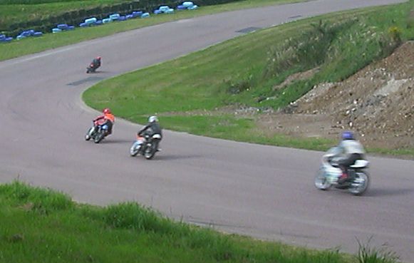 I was nervous about this race. I had done so well so far, and hadn't fallen off or blown anything up. I really didn't want do anything stupid and ruin my weekend. Nonetheless, the race got going and I went well. I had a poor start (must sort out the pilot jets) and saw Dixie on his Yamaha a good distance ahead. I tried to catch him, but couldn't so settled for a safe finish. Again I missed a gear early on and a 350 Honda came past. I was annoyed and went after him. We had a real good battle, swapping the lead from corner to corner. I was outbraking him in two places, but he had the low down 'grunt' out of the bends to just get away. I passed him again on the final lap and made it stick - excellent! I hadn't improved my lap time on last race, but with another third in class, a solid engine, a good race, no crashes or smashes, I was very satisfied.