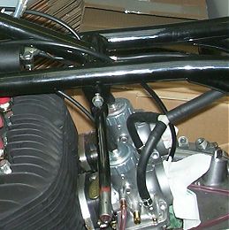 When the engine bolts are tightened up normally, the twin downtubes are pulled together by about 3mm. You must therefore braze it up with the engine firmly bolted in, otherwise you will bend the frame when you tighten it up later!