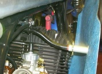 NB You MUST remember here that dual diameter spacers are needed between the centre of the bush and your engine. When bolting it all together, put a 3/4mm thich large diameter washer between the engine casing and the bush holder to leave a space for the spacers that you will need to prevent the engine touching the bush holders and frame tubes.